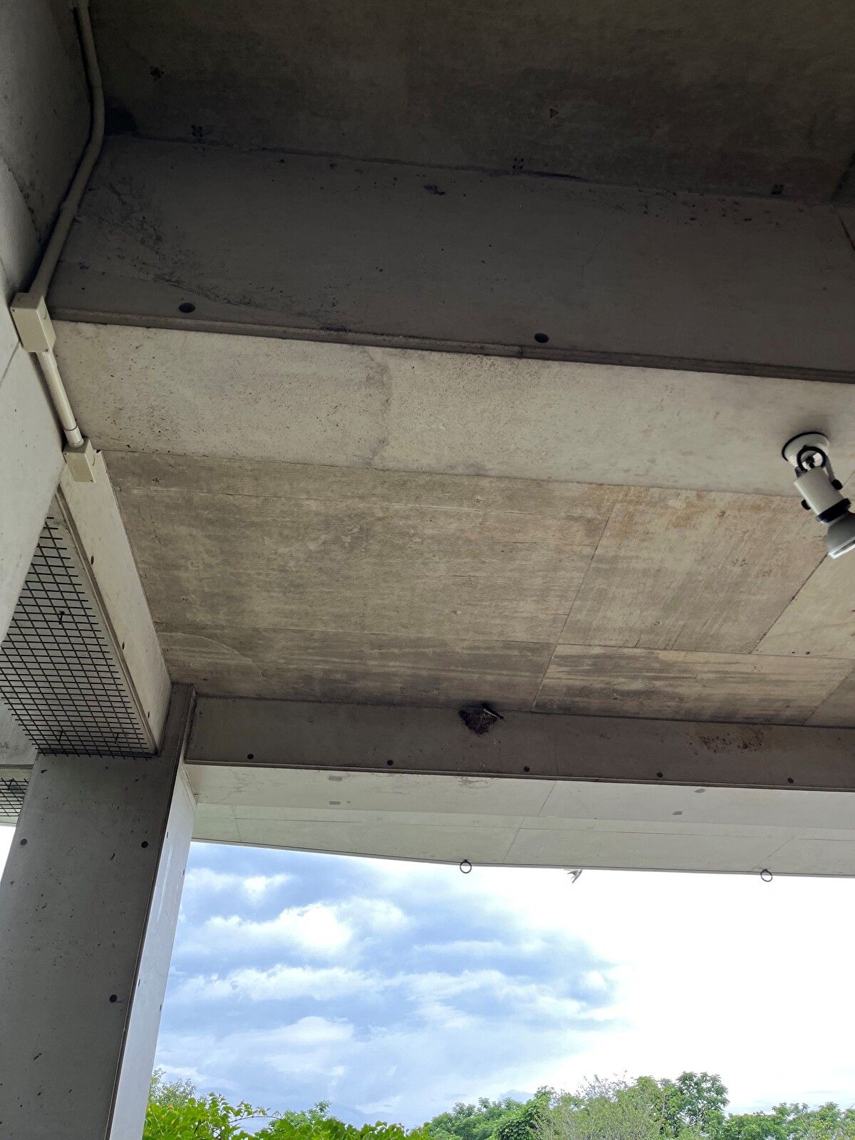 ねぐらに帰るムクドリたち、雨ですっかり増水した濁流